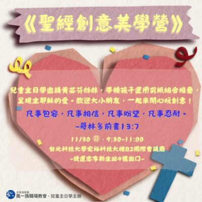 聚會資訊兒童主日學信息摘要新朋友專區 主日信息2025-11-02-哥林多前書Ⅱ-神國的言語和權能2025-10-26-葉子齊傳道-順命的兒女 教會公告20251130-兒童主日學–《聖經創意美學營》20251224-平安夜福音聚會 更多公告訊息 主日信息摘要 在神的家永遠為您預備一個位置 宣教足跡 英國格拉斯哥 越南 胡志明市
